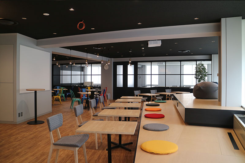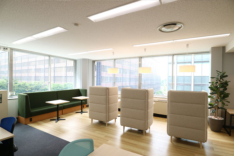 打ち合わせやランチ、休憩など、社員が自由に過ごせる空間に