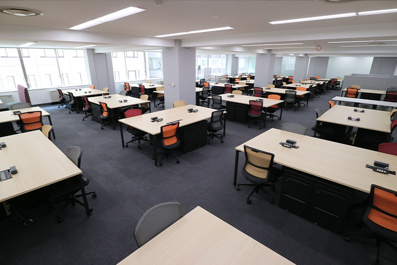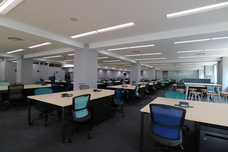 よくある長い島型ではなく、4人のブロックを交互に向きを変えてランダムに配置しています。これもコミュニケーションを生まれやすくするためです。