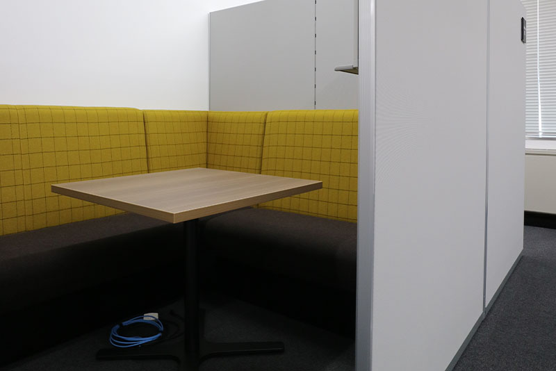 デスクや椅子のバリエーションも豊富に取り揃え、中にはソファータイプの1on1用の小さなスペースも。ちょっとした打ち合わせも気軽にできるようになりました。