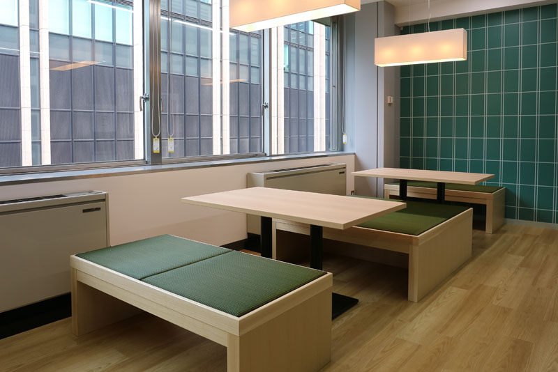 ここには畳のスペースもあり、都心のど真ん中で「和」の気分を味わいながらのランチも可能!ほかにも防音機能を施した席を用意するなど、リフレッシュだけでなく集中ワークにもピッタリです。
